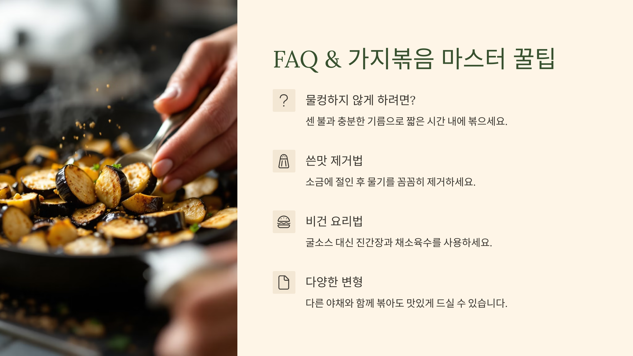 A7. 가지를 너무 익히지 않고 살짝 아삭하게 볶으면 식감이 살아나요.