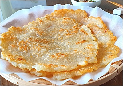 | 기름 넉넉히 | 튀기듯 부치기 | 겉면 크리스피하게 |