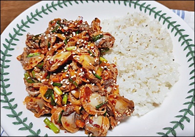 | 1 | 밥 위에 꼬막 올리기 | 꼬막은 골고루! |
