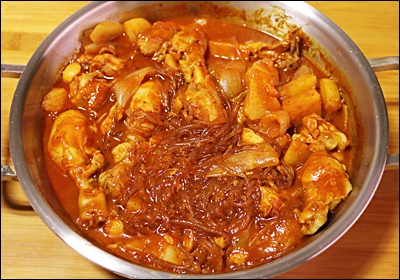 | 2단계 | 감자 등 채소 넣고 남은 양념 추가 | 중불로 졸이기 |
