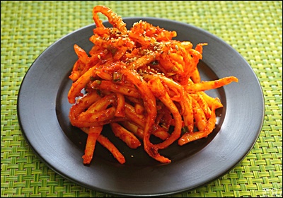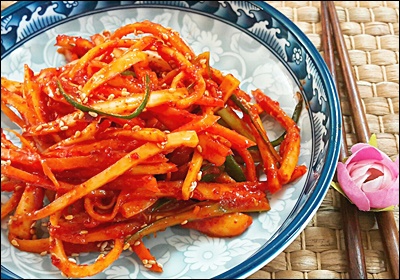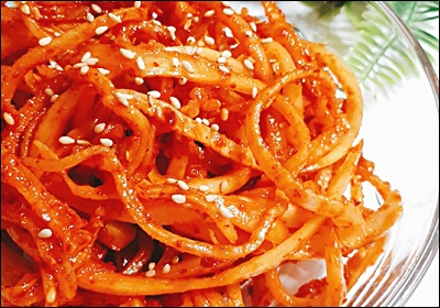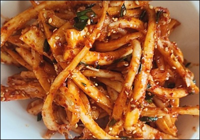 A5. 식초나 고춧가루의 양을 줄이고 도라지를 추가해 비율을 맞추면 부드러운 맛으로 조절돼요.