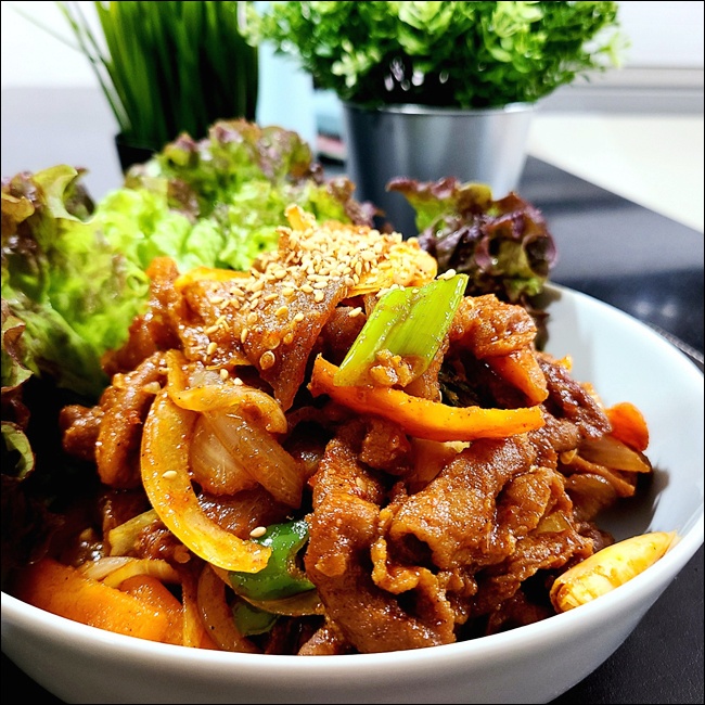 양념을 잘 했어도 조리 과정에서 태우거나 물기가 생기면 맛이 떨어져요. 불맛을 살리는 데는 불 조절과 팬의 예열이 정말 중요해요. 팬은 꼭 센 불에서 2~3분 예열한 후 고기를 올려야 육즙이 잡히고 불향도 배어요.