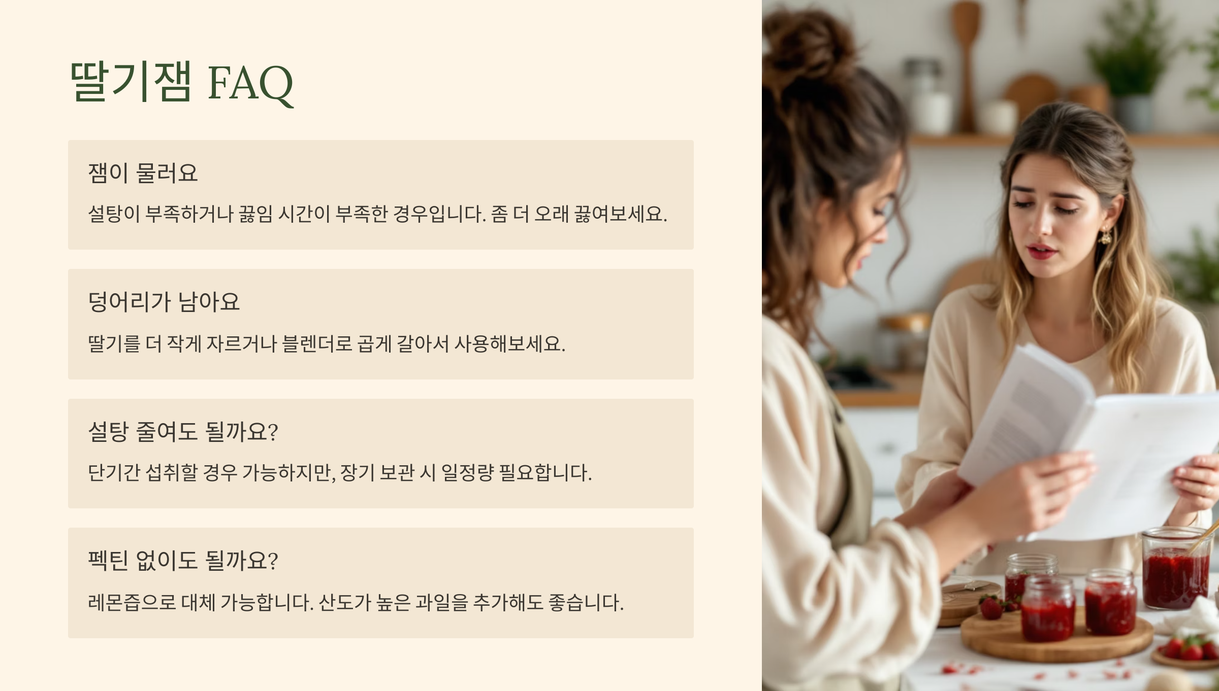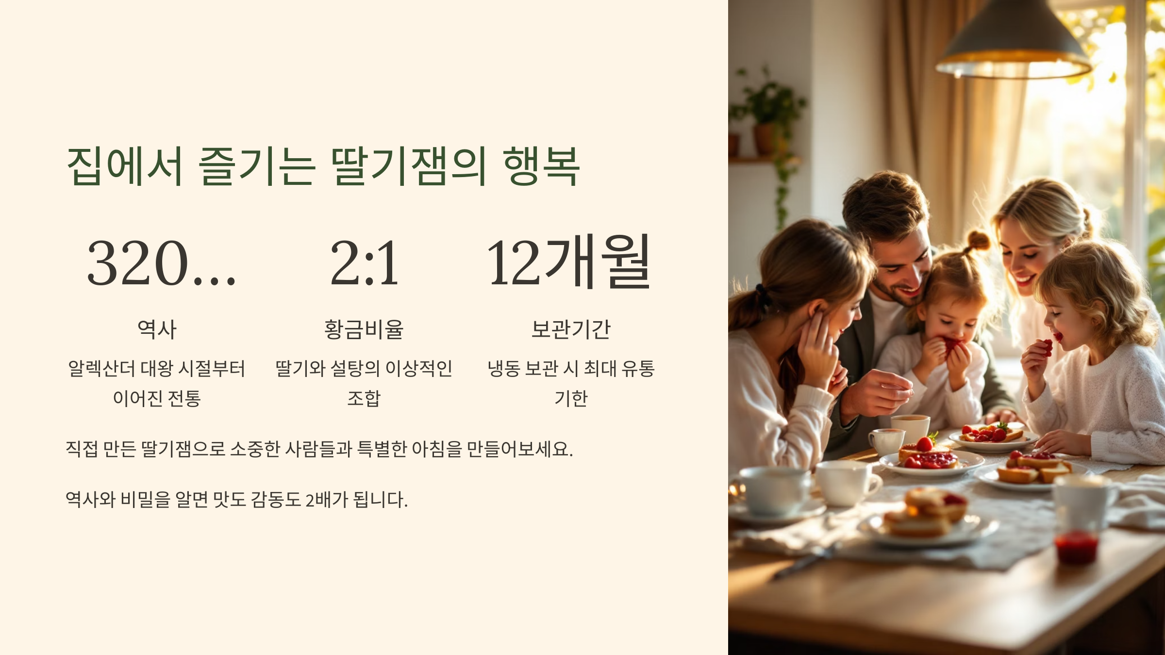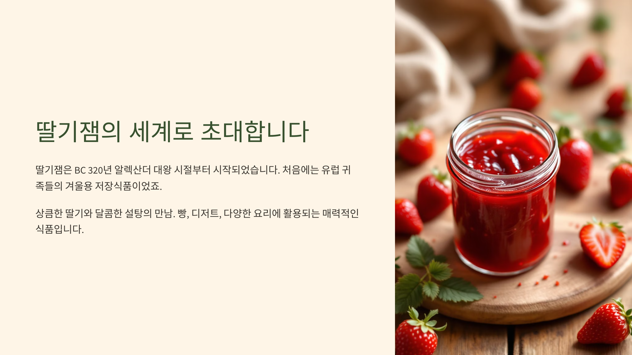 지금부터 딸기잼 만드는 전체 과정이 본격적으로 시작돼요. 📦 인트로 & 목차는 여기까지고, 다음부터 본문 7문단과 2개의 요약 표가 자동 출력돼요.