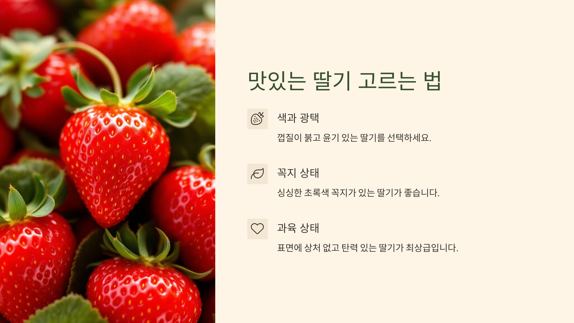 | 항목 | 좋은 딸기 | 피해야 할 딸기 |