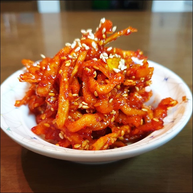 무말랭이무침은 밑반찬 중에서도 손꼽히는 인기 메뉴예요. 아삭한 식감에 매콤달콤한 양념이 더해지면 밥도둑 그 자체가 되죠! 특히 겨울철 건조한 날씨에 무를 말려 만든 무말랭이는 영양이 응축돼 있어요.