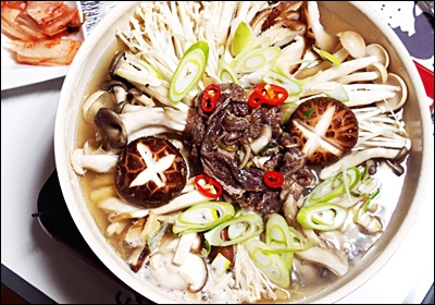 불고기나 소고기 양지 부위를 곁들이면 더 깊은 맛을 낼 수 있어요. 단, 버섯만의 순수한 맛을 원한다면 고기 없이도 충분히 맛있게 완성돼요. 육류를 넣을 경우는 살짝 볶아서 넣으면 국물이 탁해지지 않아서 더 깔끔해요.