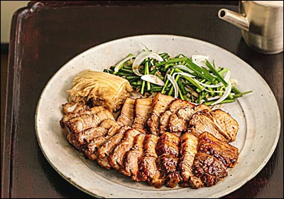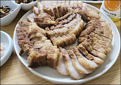 접시에 담을 때는 두 세 조각씩 겹쳐서 곡선 모양으로 늘어놓으면 보기에도 맛깔나고 먹기에도 편해요. 가운데 김치나 마늘, 고추 등을 곁들이면 더 먹음직스러운 한 접시가 완성돼요 😊