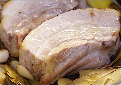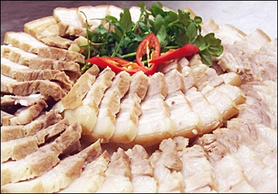 고기 선택은 맛있는 보쌈의 절반 이상을 차지해요. 대표적인 부위는 삼겹살과 목살인데요, 삼겹살은 지방이 풍부해 부드럽고 고소하고, 목살은 살코기가 쫀쫀해서 씹는 맛이 좋아요. 요즘은 이 두 부위를 섞어 삶기도 해요.
