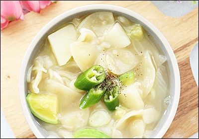 | 애호박 | 달콤하고 부드러움 | 수제비 넣은 후 중간 |