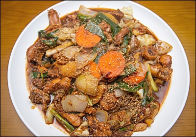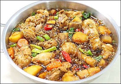 안동찜닭은 경상북도 안동에서 시작된 한국의 대표적인 찜 요리예요. 진한 간장 베이스에 감자, 당면, 채소를 넉넉히 넣고 자작하게 졸여내는 방식으로, 푸짐함과 감칠맛이 동시에 살아 있는 전통 요리랍니다.