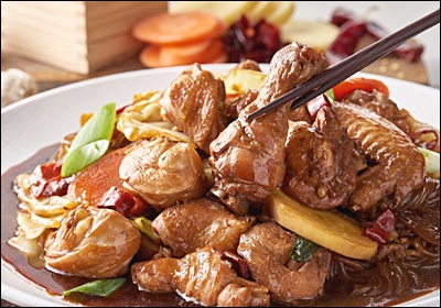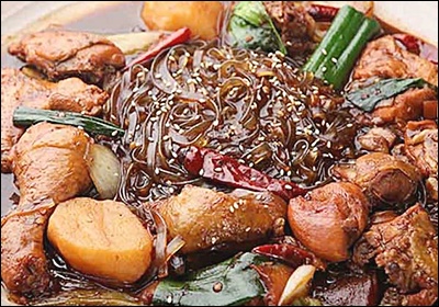 기존의 삼계탕, 백숙과는 다르게 간장 베이스에 달큰하고 매콤한 맛을 더한 게 안동찜닭만의 핵심이에요. 특히 길게 쫄깃하게 늘어나는 당면이 포인트! 국물에 감자와 당면이 양념을 쏙 머금어 깊은 맛을 만들어줘요.