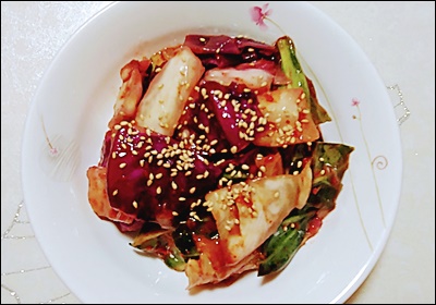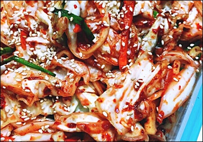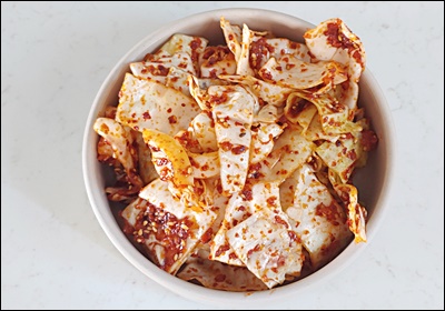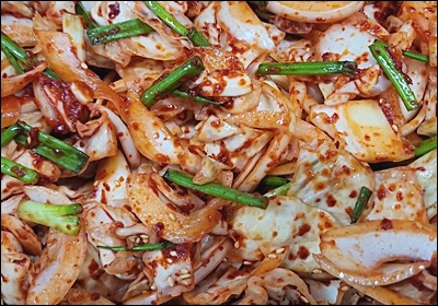 | 재료 섞기 | 절인 야채 + 고춧가루 | 순서 지켜서 조리 |