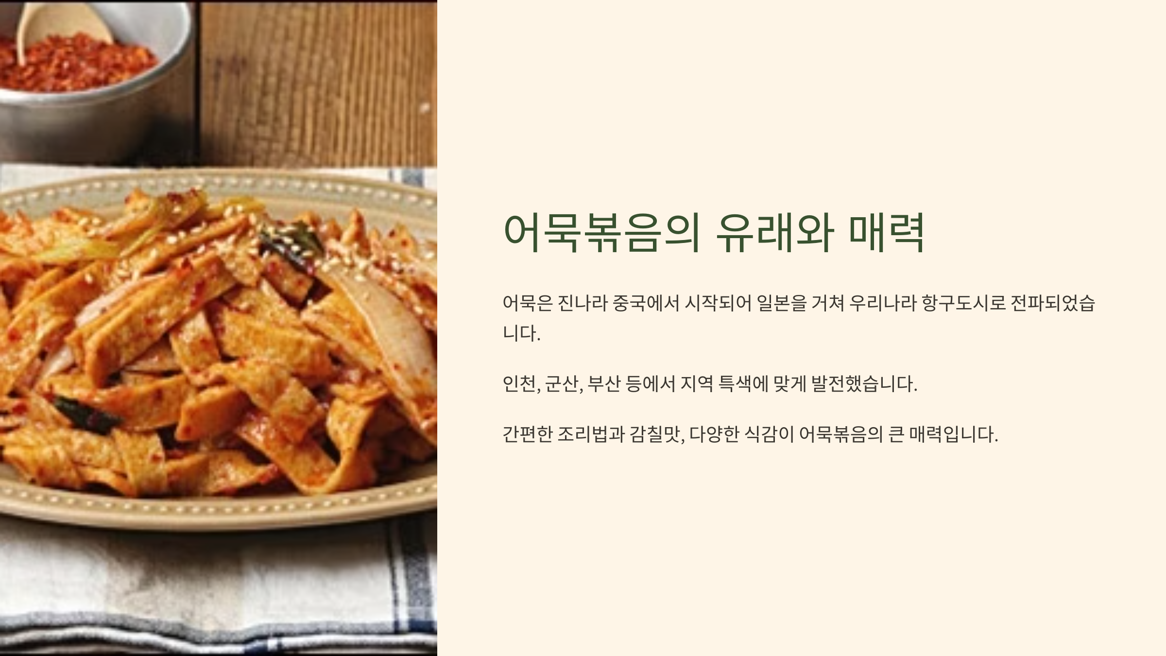 어묵볶음은 한국에서 오랜 시간 사랑받아온 반찬 중 하나예요. 일본의 '오뎅'이 한반도로 들어오면서 어묵이 대중화됐고, 찌개나 탕뿐만 아니라 볶음 요리로도 자주 활용되기 시작했죠. 특히 1970~80년대 도시락 문화가 확산되면서 어묵볶음은 필수 반찬으로 자리 잡았어요.