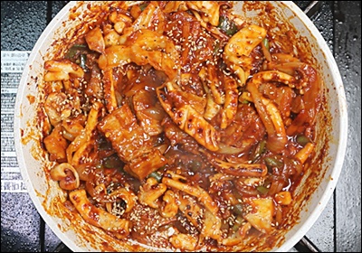 | 오징어 | 1마리 | 내장 제거, 채 썰기 |