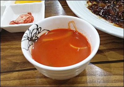 짬뽕국물은 해산물의 신선함과 고추기름의 매운 맛이 잘 어우러져 한 그릇만 먹어도 속이 든든해지는 음식이에요.