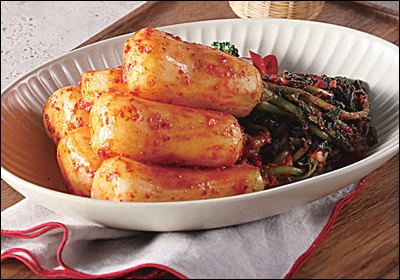 총각김치는 뿌리째 먹는 무김치로, 특유의 아삭한 식감과 칼칼한 양념 맛이 조화를 이루는 별미예요. 쌀쌀한 계절이면 김장 대신 가볍게 담그는 김치로 인기가 많고, 여름철에는 시원하게 숙성시켜 먹기에도 딱 좋답니다.