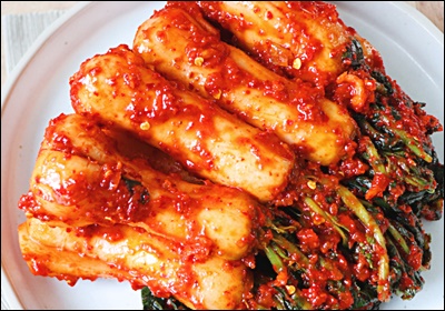 김치로 만들면 유산균이 자연 발생하면서 장 속 유익균을 증가시키고, 해로운 균은 줄여줘요. 그래서 김치를 꾸준히 먹는 사람들은 장이 튼튼하고 면역력도 강하다고 하죠. 총각김치는 유산균이 자글자글 살아 있는 대표적인 발효 음식이에요.
