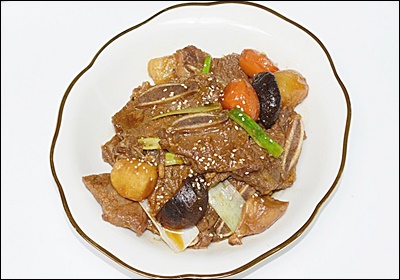 이제 마지막은 시선을 사로잡는 플레이팅이에요. 아무리 맛있어도 보기 좋게 담아야 먹음직스러움이 배가 되죠. LA갈비찜은 큰 접시나 뚝배기에 담는 게 가장 좋아요.